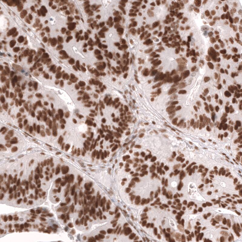 Staining of human breast cancer (ductal carcinoma) shows strong nuclear positivity in tumor cells.Immunohistochemistry-Paraffin: MSH2 Antibody (CL13724) [NBP3-24573]
