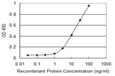 Sandwich ELISA: MTGR1 Antibody (3A2) [H00009139-M05] - Detection limit for recombinant GST tagged CBFA2T2 is 0.3 ng/ml as a capture antibody.