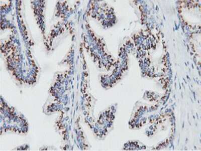 Immunohistochemistry-Paraffin: NMT2 Antibody (1G3) [NBP2-01676] Staining of paraffin-embedded Human prostate tissue using anti-NMT2 mouse monoclonal antibody.