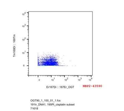 CyTOF-reported: O-GlcNAc Transferase p110 subunit Antibody (678) [NBP2-43590] - Mouse spleen cells were analyzed using NBP2-43590-167Er at 1:100. CyTOF image submitted by a verified customer review.