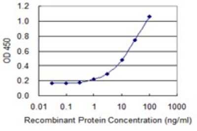 Sandwich ELISA: PAGE1 Antibody (6G6) [H00008712-M01] - Detection limit for recombinant GST tagged PAGE1 is 0.3 ng/ml as a capture antibody.