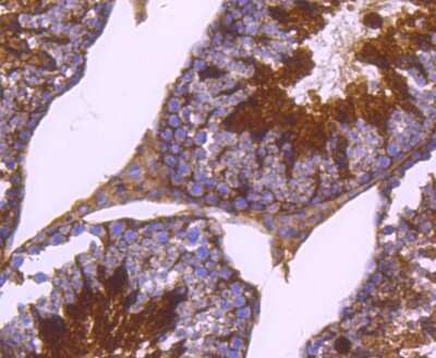 Immunohistochemistry-Paraffin: PKA R2 [p Ser99] Antibody (SC54-04) [NBP2-67571] - Analysis of paraffin-embedded mouse testis tissue using anti- phospho-PKA R2 (S99) antibody. Counter stained with hematoxylin.
