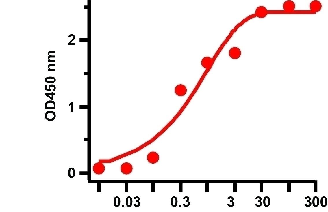 ELISA: SARS-CoV-2 Spike S1 Protein Antibody (CR3022) - Azide and BSA Free [NBP3-26919] - Sandwich ELISA for SARS-CoV-2 Matched Pair Spike S1 Antibodies. Antibodies: SARS-CoV-2 Spike Antibodies, NBP3-07065 and NBP3-26919. A sandwich ELISA was performed using SARS-CoV-2 Spike S1 antibody (NBP3-07065, 2ug/ml) as capture antibody, the Spike S1 recombinant protein as the binding protein, and the anti-SARS-CoV-2 Spike S1 protein antibody (NBP3-26919, 1ug/ml) as the detection antibody. Secondary: Mouse anti-human IgG HRP conjugate at 1:10000 dilution. Detection range is from 0.03 ng to 300 ng. EC50 = 1.58 ng.Applications for SARS-CoV-2 Spike S1 Protein Antibody (CR3022) - Azide and BSA Free