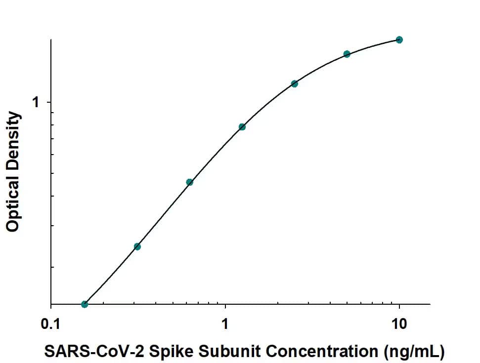 Recombinant SARS-CoV-2 Spike S2 Subunit protein was serially diluted 2-fold and captured by Rabbit Anti-SARS-CoV-2 Spike S2 Subunit Monoclonal Antibody (Catalog # MAB11370) coated on a Clear Polystyrene Microplate (Catalog # DY990). Rabbit Anti-SARS-CoV-2 Spike S2 Subunit Monoclonal Antibody (MAB11362) was biotinylated and incubated with the protein captured on the plate. Detection of the standard curve was achieved by incubating Streptavidin-HRP (Catalog # DY998) followed by Substrate Solution (Catalog # DY999) and stopping the enzymatic reaction with Stop Solution (Catalog # DY994).Applications for SARS-CoV-2 Spike S2 Subunit Antibody