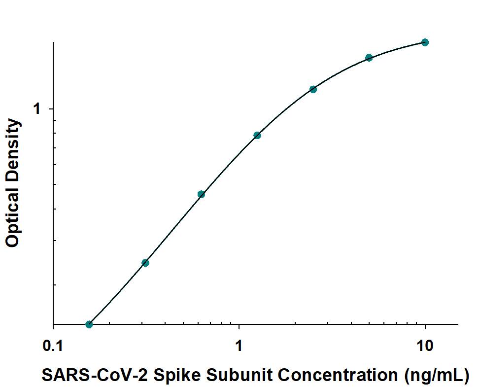 Recombinant SARS-CoV-2 Spike S2 Subunit protein was serially diluted 2-fold and captured by Rabbit Anti-SARS-CoV-2 Spike S2 Subunit Monoclonal Antibody (MAB11370) coated on a Clear Polystyrene Microplate (Catalog # DY990). Rabbit Anti-SARS-CoV-2 Spike S2 Subunit Monoclonal Antibody (Catalog # MAB11362) was biotinylated and incubated with the protein captured on the plate. Detection of the standard curve was achieved by incubating Streptavidin-HRP (Catalog # DY998) followed by Substrate Solution (Catalog # DY999) and stopping the enzymatic reaction with Stop Solution (Catalog # DY994).Applications for SARS-CoV-2 Spike S2 Subunit Antibody
