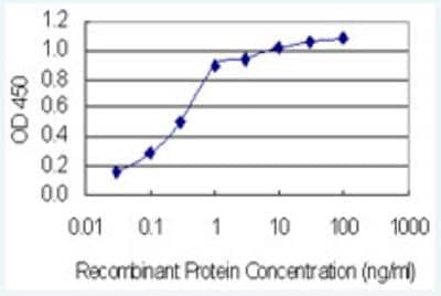 Sandwich ELISA: SLC37A4 Antibody (7B9) [H00002542-M01-100ug] - Detection limit for recombinant GST tagged SLC37A4 is 0.03 ng/ml as a capture antibody.