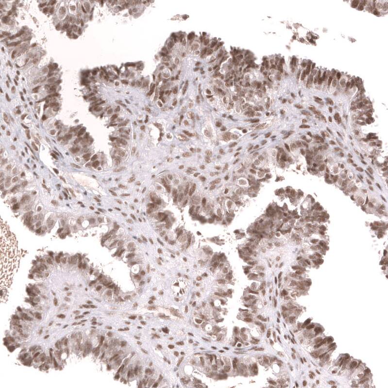 Staining of human fallopian tube shows strong nuclear positivity in glandular cells.Applications for SNF5 Antibody (CL13992) - BSA Free