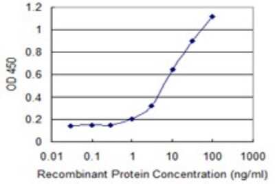 Sandwich ELISA: TBCC Antibody (3D3) [H00006903-M04] - Detection limit for recombinant GST tagged TBCC is 0.3 ng/ml as a capture antibody.