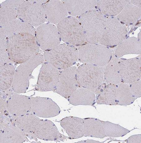 Staining of human skeletal muscle shows very weak positivity in myocytes.Immunohistochemistry: TMEM 138 Antibody - BSA Free [NBP1-92528]