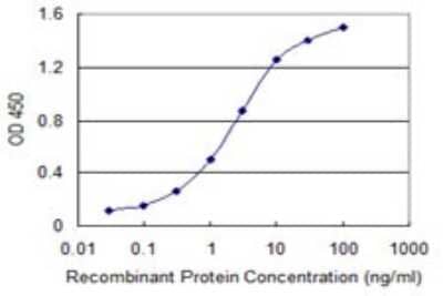 Sandwich ELISA: Vasohibin Antibody (4A3) [H00022846-M05] - Detection limit for recombinant GST tagged VASH1 is 0.03 ng/ml as a capture antibody.