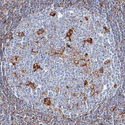 Immunohistochemistry-Paraffin: Vimentin Antibody (979542) [Unconjugated] [MAB21053] - Vimentin was detected in immersion fixed paraffin-embedded sections of human lymph node tissue using Mouse Anti-Human Vimentin Monoclonal Antibody (Catalog # MAB21053) at 5 ug/mL for 1 hour at room temperature followed by incubation with the Anti-Mouse IgG VisUCyte HRP Polymer Antibody (Catalog # VC001). Before incubation with the primary antibody, tissue was subjected to heat-induced epitope retrieval using Antigen Retrieval Reagent-Basic (Catalog # CTS013). Tissue was stained using DAB (brown) and counterstained with hematoxylin (blue). Specific staining was localized to cytoplasm in lymphocytes in germinal centers.