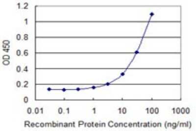Sandwich ELISA: ZNF232 Antibody (1F8) [H00007775-M06] - Detection limit for recombinant GST tagged ZNF232 is 1 ng/ml as a capture antibody.