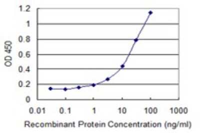 Sandwich ELISA: Zyxin Antibody (2D1) [H00007791-M02] - Detection limit for recombinant GST tagged ZYX is 0.3 ng/ml as a capture antibody.