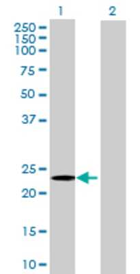 Lane 1: GSTZ1 transfected lysate (23.87 KDa) Lane 2: Non-transfected lysate.