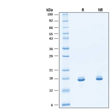 >95%, by SDS-PAGE with quantitative densitometry by Coomassie® Blue Staining. 17192 Da ± 20 Da.