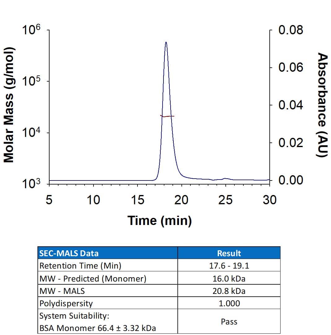 TSLP (Thymic Stromal Lymphopoietin) is a secreted cytokine that signals through a complex of TSLP R and IL-7 R alpha/CD127. It acts on thymic dendritic cells which convert potentially autoreactive T cells into regulatory T cells. TSLP promotes fetal liver pro-B cell proliferation as well as large pre-B cell differentiation and B cell lymphopoiesis in adult bone marrow. It is produced by allergen challenged keratinocytes and mucosal epithelial cells. It enhances Th2 biased allergic inflammation by limiting Th1/Th17 inflammation, promoting Th2 differentiation, and enhancing the function of basophils, eosinophils, and mast cells.
