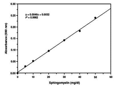 Quality control test: Standard curve Sphingomyelin Assay Kit provides a method for quantifying sphingomyelin in plasma or serum.