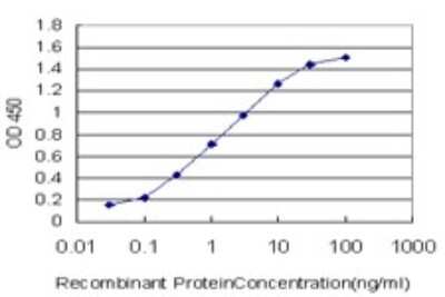Sandwich ELISA: BACH1 Antibody (1B8) [H00000571-M02] - Detection limit for recombinant GST tagged BACH1 is approximately 0.03ng/ml as a capture antibody.