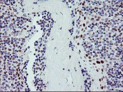 Immunohistochemistry-Paraffin: BACH1 Antibody (4E11) [NBP2-01904] Staining of paraffin-embedded Human tonsil using anti-BACH1 mouse monoclonal antibody.