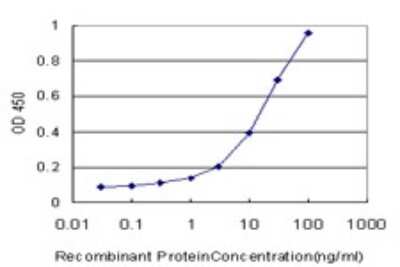 Sandwich ELISA: beta Sarcoglycan Antibody (1E3) [H00006443-M01] - Detection limit for recombinant GST tagged SGCB is approximately 0.3ng/ml as a capture antibody.