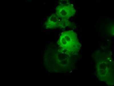 Immunocytochemistry/Immunofluorescence: BTK Antibody (3A2) [NBP2-02472] Staining of COS7 cells transiently transfected by pCMV6-ENTRY BTK.