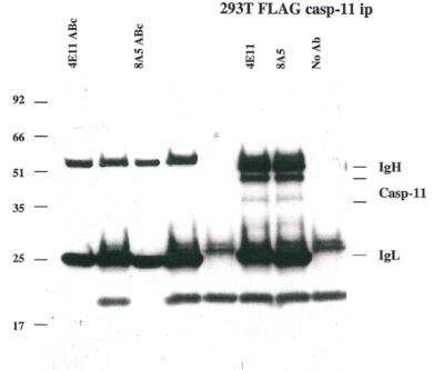 Caspase-11 Antibody (8A5) - BSA Free [NBP2-80099] - Data of overexpressed FLAG-tagged caspase-11 in 293T cells using Caspase-11 mAbs (4E11 and 8A5) (Prod. No. NBP2-80099)