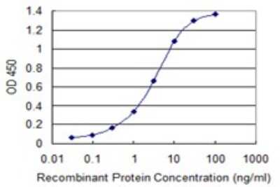 Sandwich ELISA: CCDC6 Antibody (5D11) [H00008030-M03] - Detection limit for recombinant GST tagged CCDC6 is 0.03 ng/ml as a capture antibody.