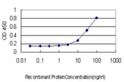 Sandwich ELISA: Coagulation Factor XI Antibody (2H8) [H00002160-M01] - Detection limit for recombinant GST tagged F11 is approximately 10ng/ml as a capture antibody.