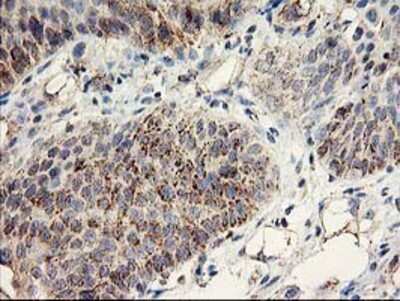 Immunohistochemistry-Paraffin: DAND5 Antibody (2H3) [NBP2-01223] Staining of paraffin-embedded Carcinoma of Human bladder tissue using anti-DAND5 mouse monoclonal antibody.