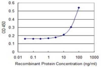 Sandwich ELISA: DDT Antibody (1D5) [H00001652-M04] - Detection limit for recombinant GST tagged DDT is 3 ng/ml as a capture antibody.