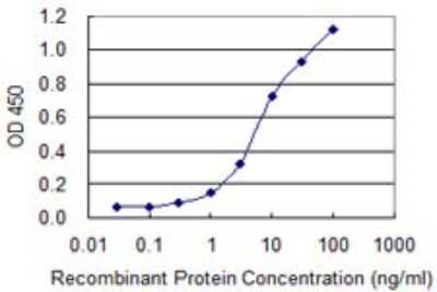 Sandwich ELISA Capture: EBF-1 Antibody (1C12) [H00001879-M01J] - Detection limit for recombinant GST tagged EBF-1 is 0.1 ng/ml as a capture antibody.Applications for EBF-1 Antibody (1C12) - Azide and BSA Free