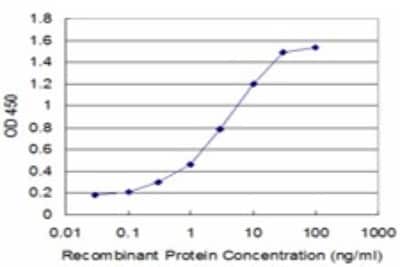 Sandwich ELISA: EDNRA/Endothelin R Type A Antibody (2A5) [H00001909-M02] - Detection limit for recombinant GST tagged EDNRA is approximately 0.1ng/ml as a capture antibody.