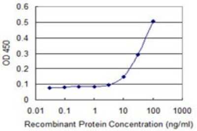 Sandwich ELISA: ELF5 Antibody (3D10) [H00002001-M01] - Detection limit for recombinant GST tagged ELF5 is 3 ng/ml as a capture antibody.