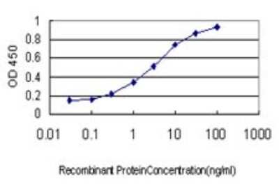Sandwich ELISA: Enah/Vasp-like Antibody (5G1) [H00051466-M01] - Detection limit for recombinant GST tagged EVL is approximately 0.03ng/ml as a capture antibody.
