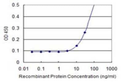 Sandwich ELISA: Exosome component 5 Antibody (1E11) [H00056915-M05] - Detection limit for recombinant GST tagged EXOSC5 is 3 ng/ml as a capture antibody.