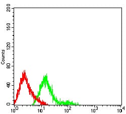 Flow Cytometry: Fucosyltransferase 3/FUT3 Antibody (1F8G5C7) [NBP3-27142] - Analysis of HL-60 cells using Fucosyltransferase 3/FUT3 mouse mAb (green) and negative control (red).Western Blot: Fucosyltransferase 3/FUT3 Antibody (1F8G5C7) [NBP3-27142] -