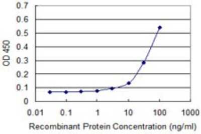Sandwich ELISA: Hemoglobin zeta Antibody (1G10) [H00003050-M03] - Detection limit for recombinant GST tagged HBZ is approximately 10ng/ml as a capture antibody.