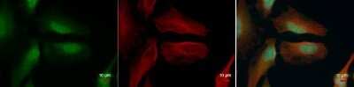 Immunocytochemistry/Immunofluorescence: Histone H4 [Trimethyl Lys20] Antibody [NBP2-42862] - Analysis of HeLa cells were fixed in 4% paraformaldehyde at RT for 15 min. Green: Histone H4 (tri methyl Lys20) protein stained by Histone H4 (tri methyl Lys20) antibody diluted at 1:500. Red: alpha Tubulin antibody [114], a cytoskeleton marker, stained by diluted at 1:500. Blue: Hoechst 33342 staining.