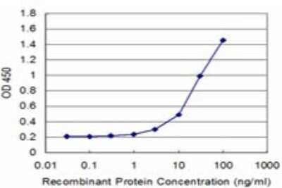 Sandwich ELISA: HMGA2 Antibody (1D8) [H00008091-M02] - Detection limit for recombinant GST tagged HMGA2 is approximately 3ng/ml as a capture antibody.