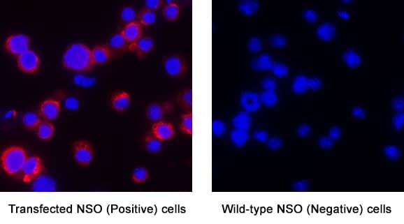 Sample: Immersion fixed Transfected NSO (positive) and Wild type NSO (negative)