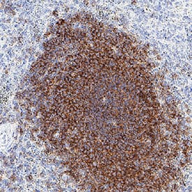Sample: Immersion fixed paraffin-embedded sections of human B-cell lymphoma, spleen, and tonsil