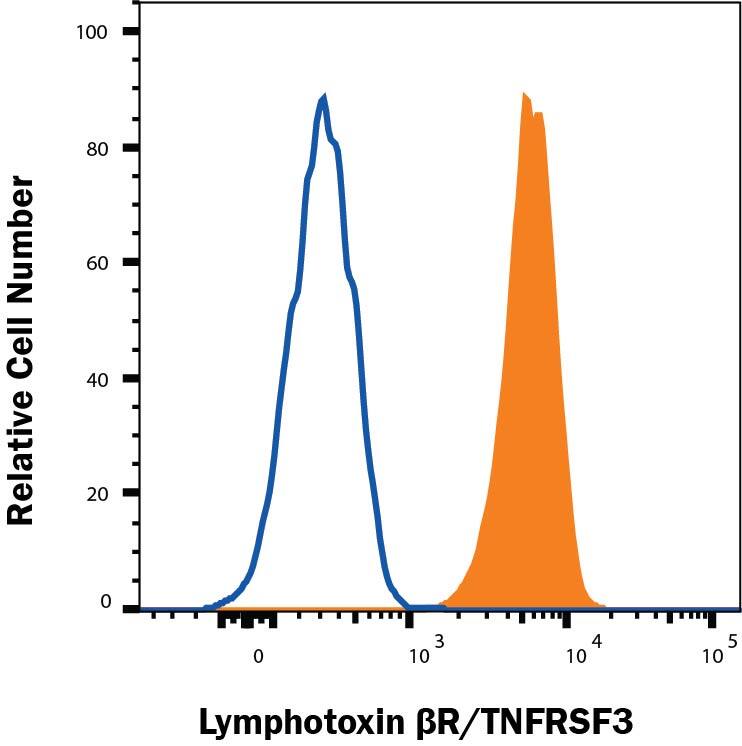 Detection of Lymphotoxin  betaR/TNFRSF3 in A549 cells by Flow Cytometry.