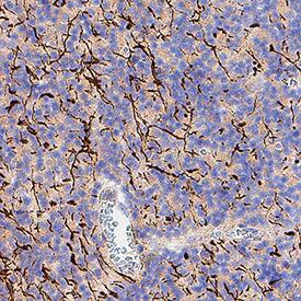 MAG/Siglec-4a was detected in immersion fixed paraffin-embedded sections of human cerebellum using Mouse Anti-Human MAG/Siglec-4a Monoclonal Antibody (Catalog # MAB11688) at 5 µg/ml for 1 hour at room temperature followed by incubation with the Anti-Mouse IgG VisUCyte™ HRP Polymer Antibody (Catalog # VC001) or the HRP-conjugated Anti-Mouse IgG Secondary Antibody (Catalog # HAF007). Before incubation with the primary antibody, tissue was subjected to heat-induced epitope retrieval using VisUCyte Antigen Retrieval Reagent-Basic (Catalog # VCTS021). Tissue was stained using DAB (brown) and counterstained with hematoxylin (blue). Specific staining was localized to the membrane of processes. View our protocol for IHC Staining with VisUCyte HRP Polymer Detection Reagents.