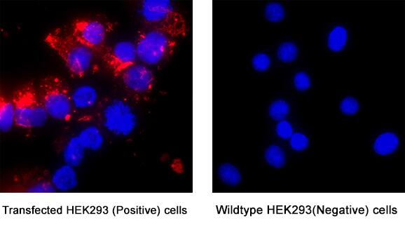 Sample: Immersion fixed Transfected HEK293 Human Embryonic Kidney Cell Line (Positive) And Wild Type HEK293 Human Embryonic Kidney Cell Line (Negative) Cells