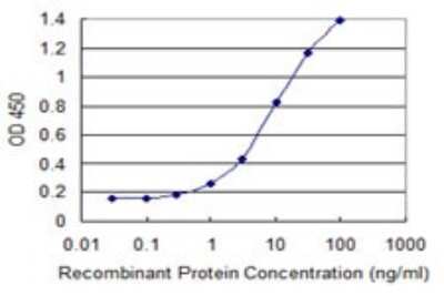 Sandwich ELISA: HUS1 Antibody (2B12) [H00003364-M01] - Detection limit for recombinant GST tagged HUS1 is 0.1 ng/ml as a capture antibody.