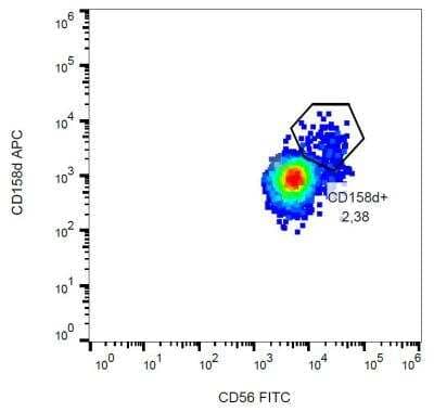 Flow (Cell Surface): KIR2DL4/CD158d Antibody (mAb33) [PE] [NBP1-50067] - Surface staining of CD158d in human peripheral blood using anti-CD158d (mAB#33) APC.
