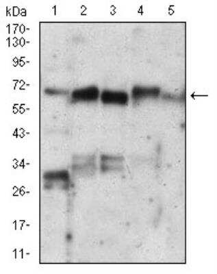 Western Blot: Ku70/XRCC6 Antibody (7A9E7) [NBP2-52590] - Analysis using XRCC6 mAb against human XRCC6 (AA: 6-214) recombinant protein. (Expected MW is 49.7 kDa)