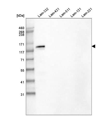 Novus Biologicals Mouse Laminin beta 3 Antibody (CL3363) - BSA Free (NBP2-46623) is a monoclonal antibody validated for use in IHC and WB. All Novus Biologicals antibodies are covered by our 100% guarantee.