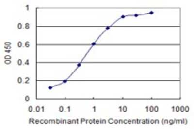 Sandwich ELISA: LBX2 Antibody (3A5) [H00085474-M02] - Detection limit for recombinant GST tagged LBX2 is 0.03 ng/ml as a capture antibody.
