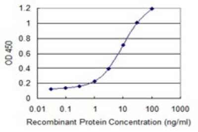 Sandwich ELISA: LDOC1 Antibody (3E5) [H00023641-M13] - Detection limit for recombinant GST tagged LDOC1 is 0.1 ng/ml as a capture antibody.